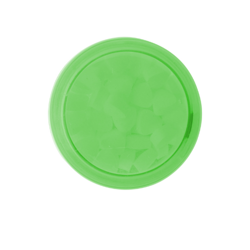 Rundes, transparentes Kunststoff-Minzglas mit farbigem Schraubdeckel. Enthält ca. 12 Gramm zuckerfreie Menthol-Bonbons.