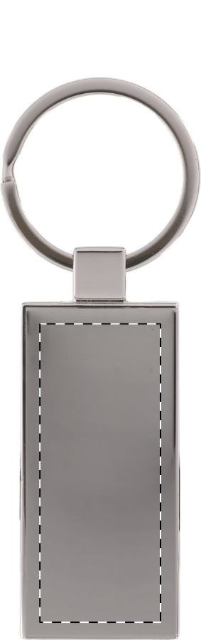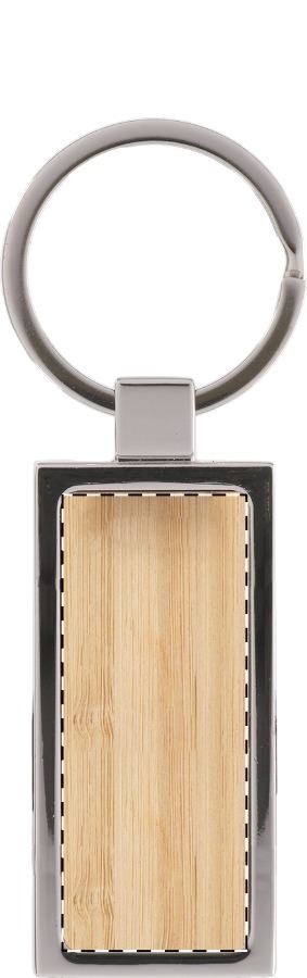 Rechteckiger Metallschlüsselanhänger mit Bambuseinsatz. Einzeln in Pappschachtel.