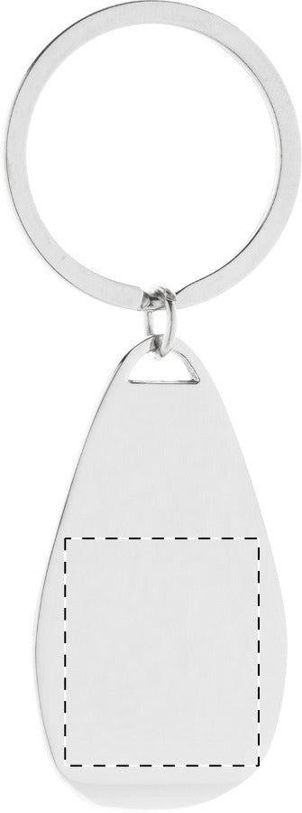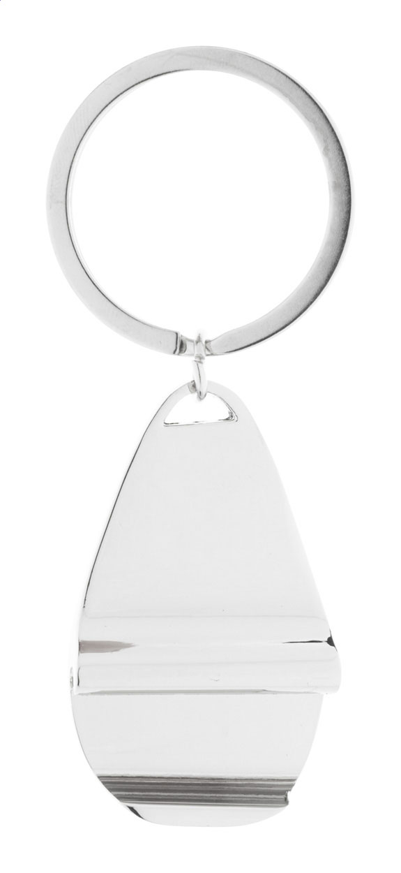 Schlüsselanhänger mit Flaschenöffner aus Metall. In Kraftpapierbox.