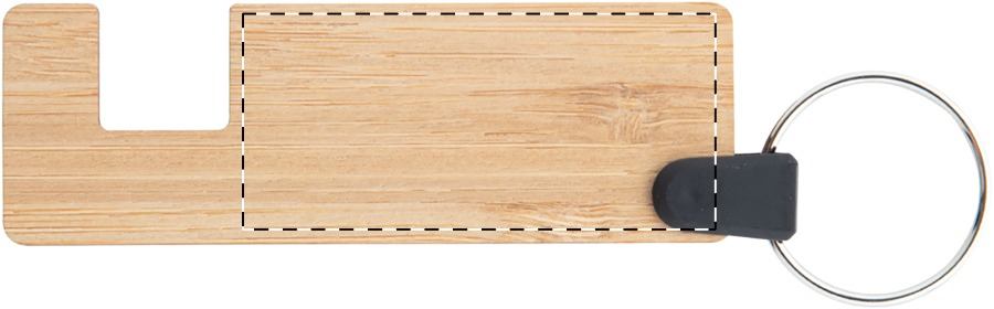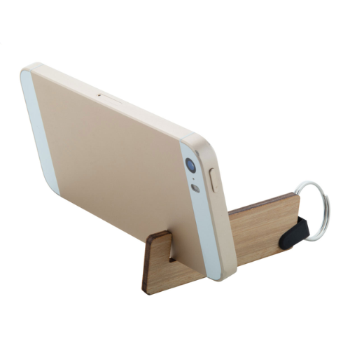 Handyhalter-Schlüsselanhänger aus Bambussperrholz, mit Metallring.